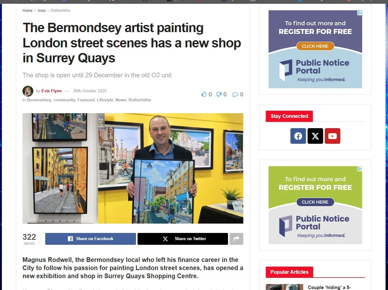 The crowning moment of 2026 has got to be setting up the Hidden London solo exhibition at Surrey Quays Shopping Centre. The event ran from October through to the end of December. A big thank you goes out to British Land. Throughout the exhibition, I had the pleasure of meeting so many of you, which is always a joy. I truly enjoy meeting the public, listening to your stories, and sharing a few of my own.